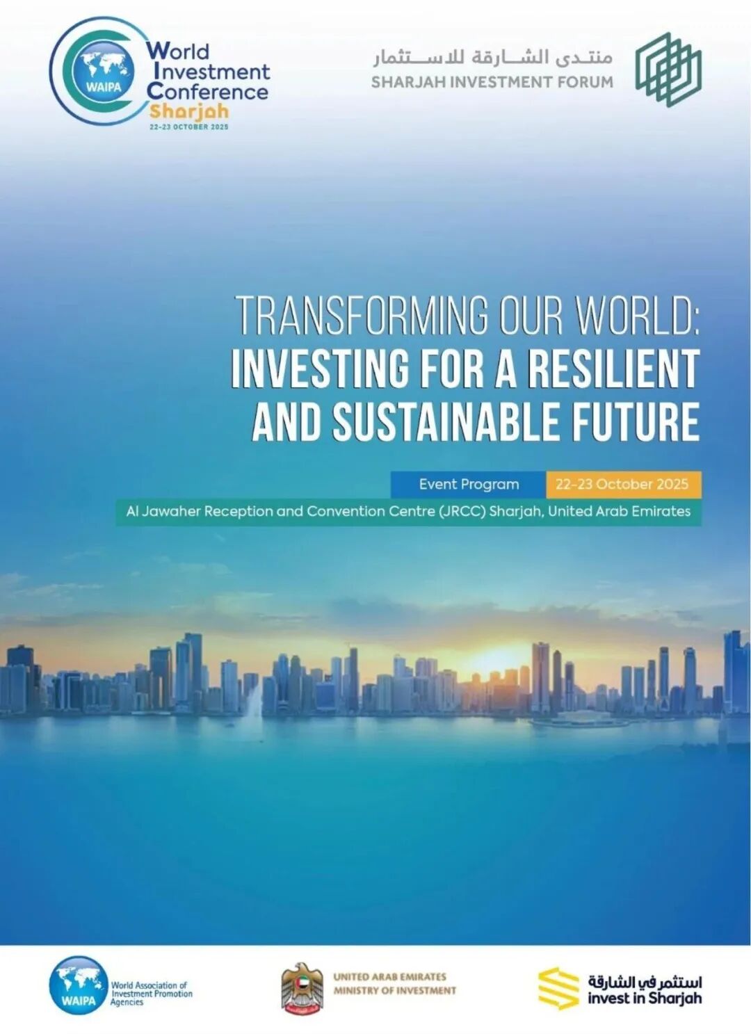 第29届世界投资大会暨第8届沙迦投资论坛将于2025年10月21日至23日在阿联酋沙迦举行。今年也是世界投资促进机构协会(The World Association of Investment Promotion Agencies, WAIPA)成立30周年。这两项活动将由世界投资促进机构协会、沙迦FDI办公室和阿联酋投资部联合举办。