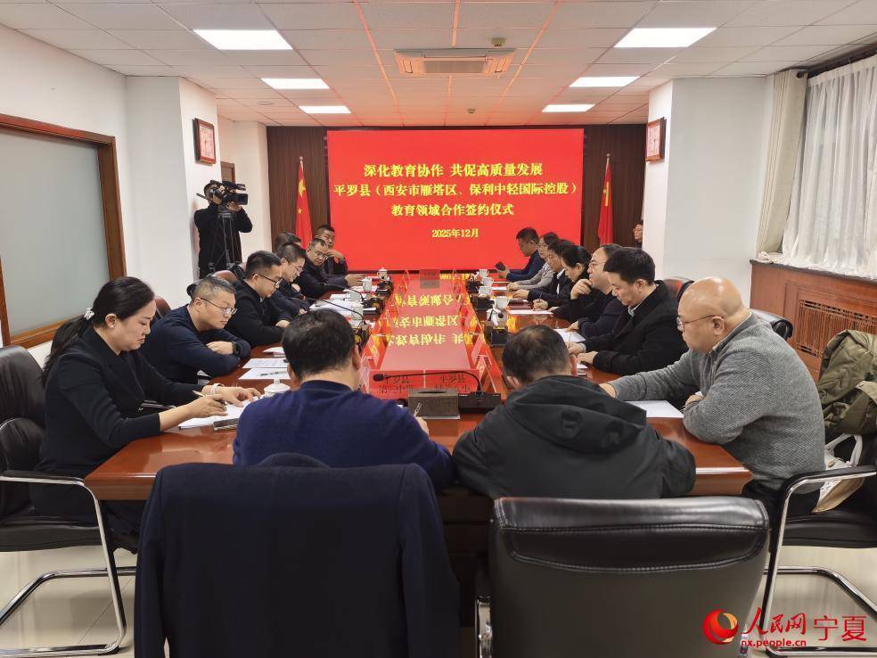 人民网银川12月12日电 (记者梁宏鑫)12月11日,“深化教育协作共促高质量发展”宁夏回族自治区平罗县(西安市雁塔区、保利中轻国际控股)教育领域合作签约仪式举行。此次签约是平罗县(西安)“双招双引”推介会成效的持续巩固,标志着两地教育实现从小学、初中、高中到职业院校的全学段协同发展迈入常态化、深层次合作新阶段。